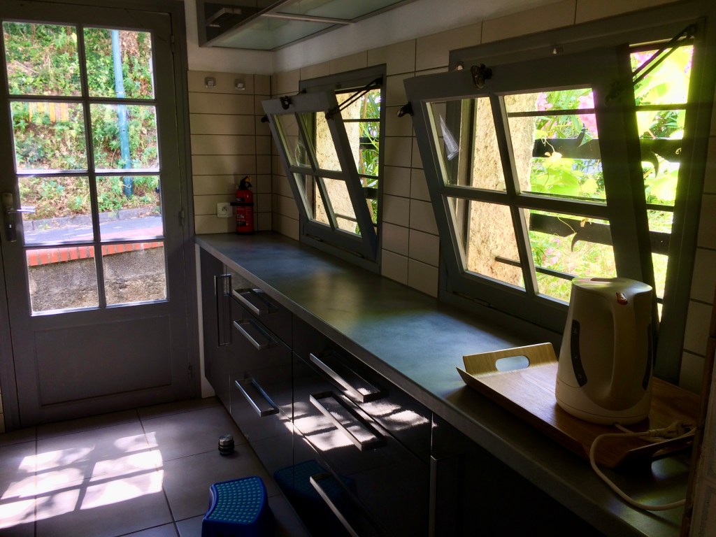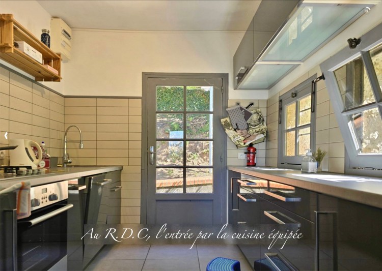 . Une belle cuisine bien équipée donnant sur le jardinet, l’allée et le salon.