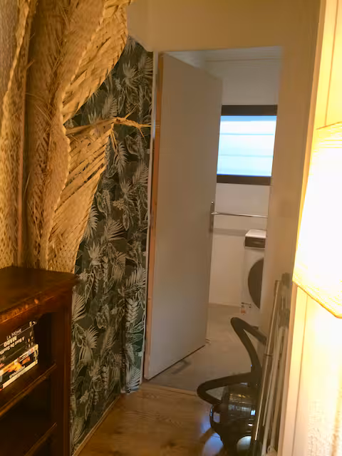 . Une salle de bain séparée et équipée d’une douche à l’italienne, elle est agréable à vivre et très lumineuse avec ses deux grandes fenêtres. Nous avons installé un lave linge (pour 2 personnes) dans la salle de bain privative autrement il y’a une laverie à 10 mins en voiture.