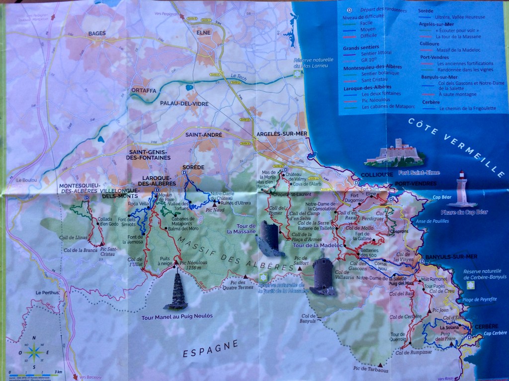 Point de vue au-dessus de la casa de l’òliba sur les Pyrénées-orientales, les villages et la mer …
