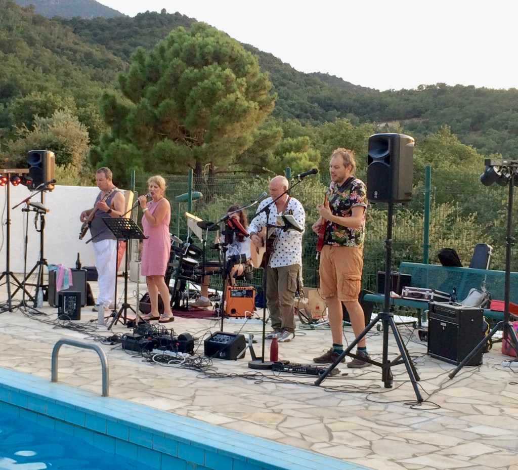 *Dans le cadre de l’assemblée générale de copropriété et la rencontre entre voisins – Repas partagé autour de la piscine – On fait passer le chapeau pour les musiciens